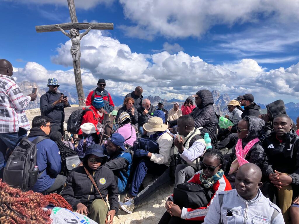 The path continued into the Dolomite mountains, with a visit to Canale d’Agordo, the hometown of Pope John Paul I, Albino Luciani. The museum dedicated to his life and memory offered the pilgrims a glimpse into the simplicity and courage of a pope who, even amid suffering, always spoke the truth with humility. Later, climbing to the highest peak of the Dolomites—2,800 meters above sea level—the group found a solitary wooden crucifix waiting for them. In the immensity of nature, the pilgrims encountered anew the grandeur and tenderness of God’s love.